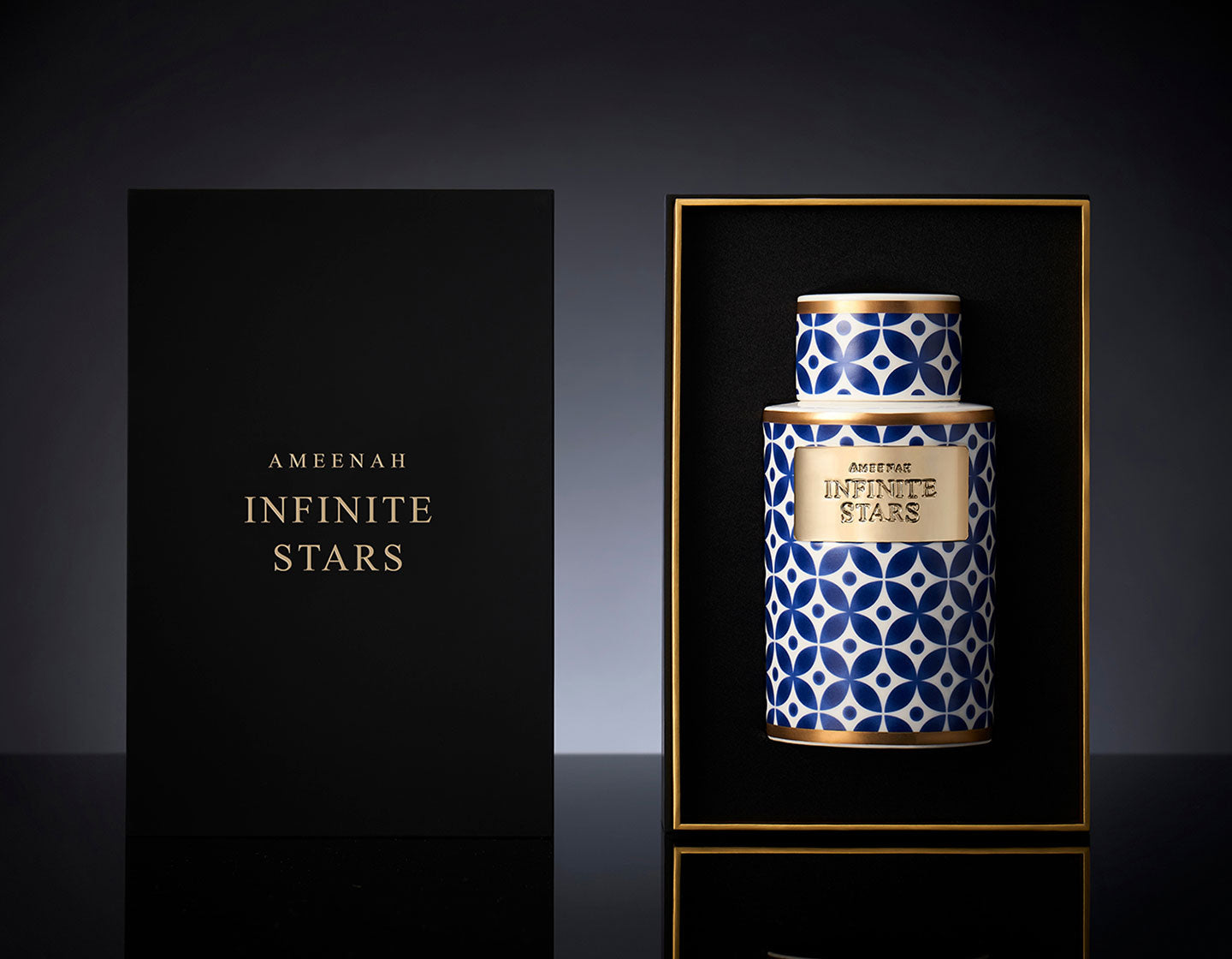 With its intense black background accentuated by prestigious golden highlights, Ameenah’s packaging represents the impeccable craftsmanship and luxurious detail of the products inside.