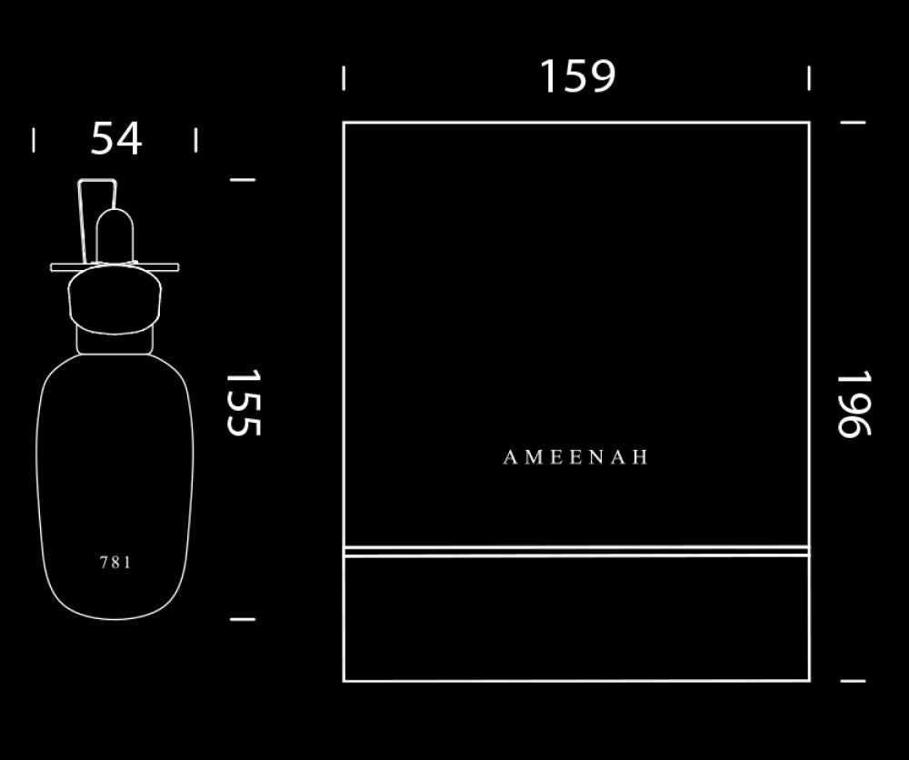 With its intense black background accentuated by prestigious golden highlights, Ameenah’s packaging represents the impeccable craftsmanship and luxurious detail of the products inside.